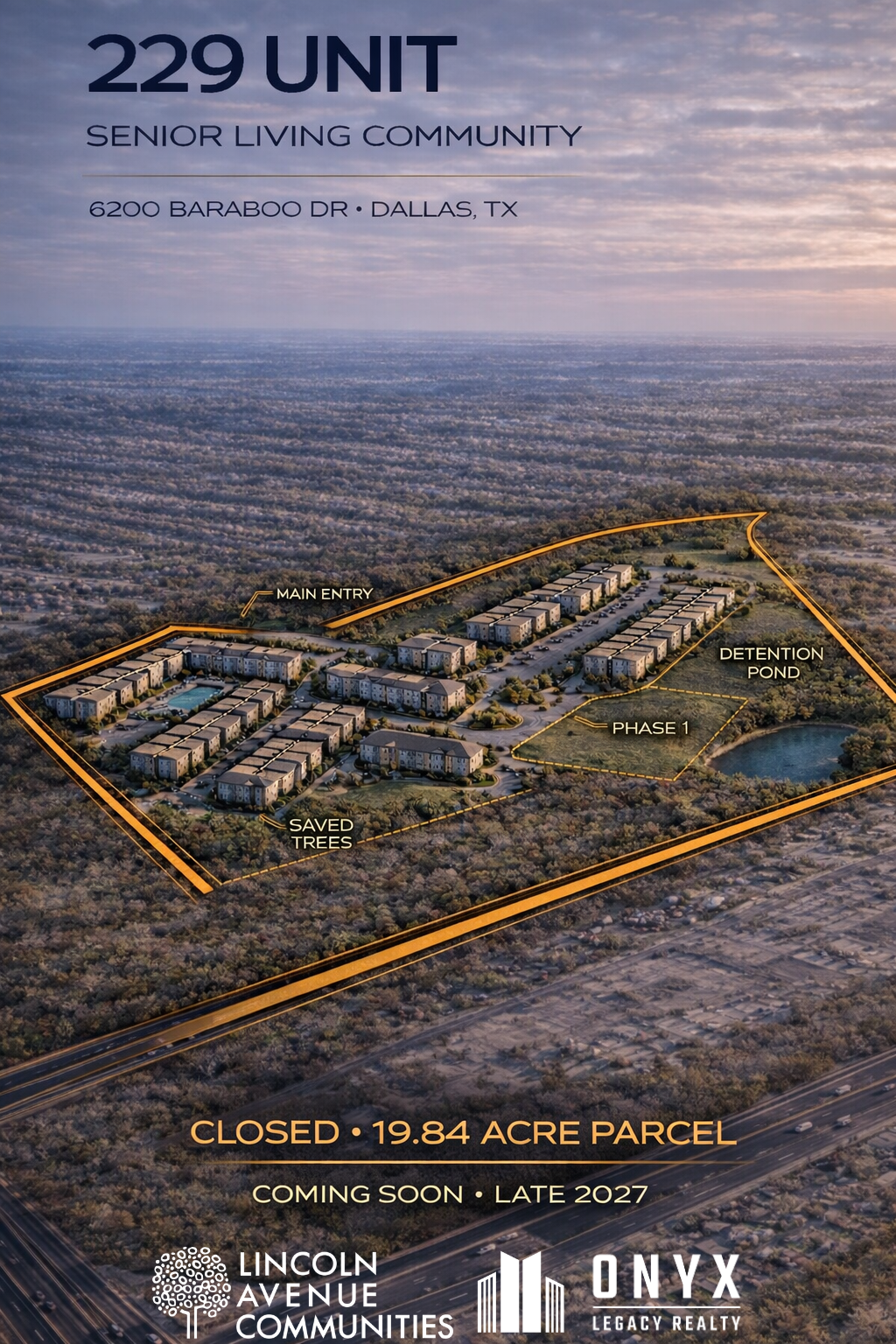 Dallas-based commercial real estate company Onyx Legacy Group is marketing the property, listed at $25 million, or nearly $207,000 per acre.